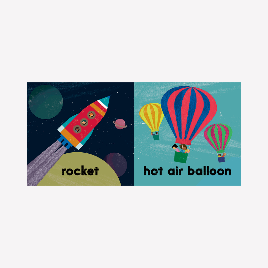 Little ones love things that go! Introduce first vocabulary in the most fun way. From cars to hot air balloons and trains to rafts, little ones will delight in learning about a world that's always on the move.
