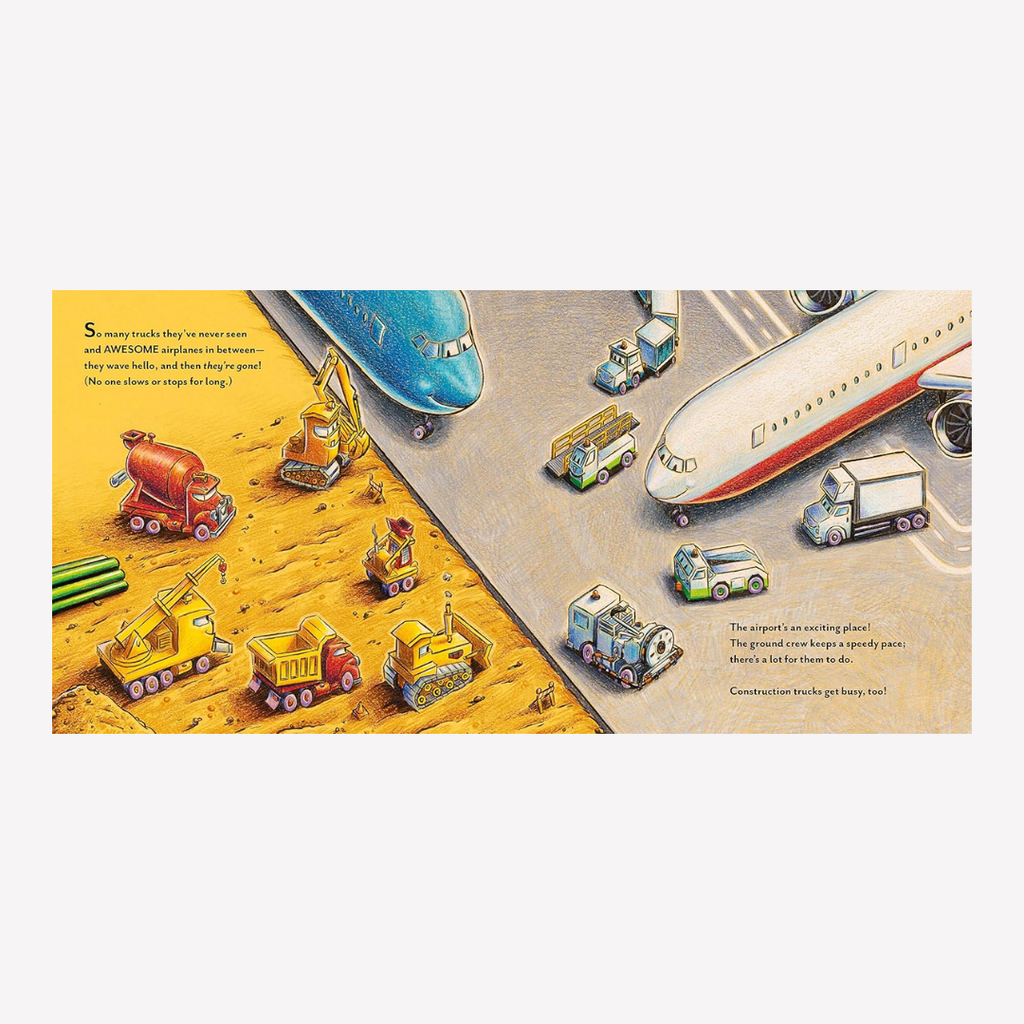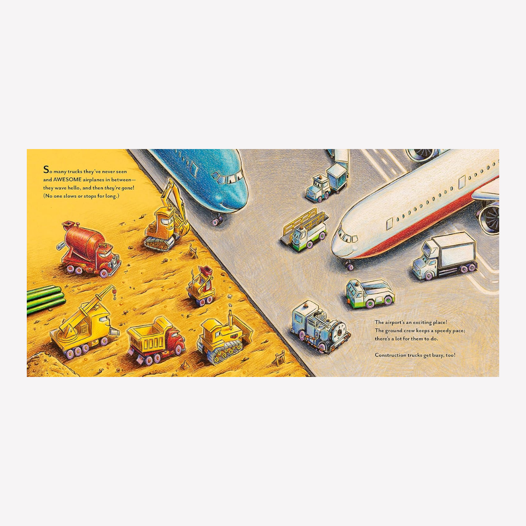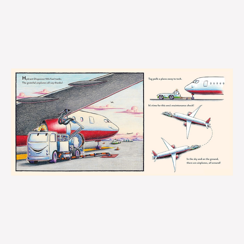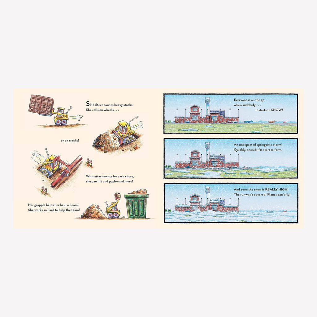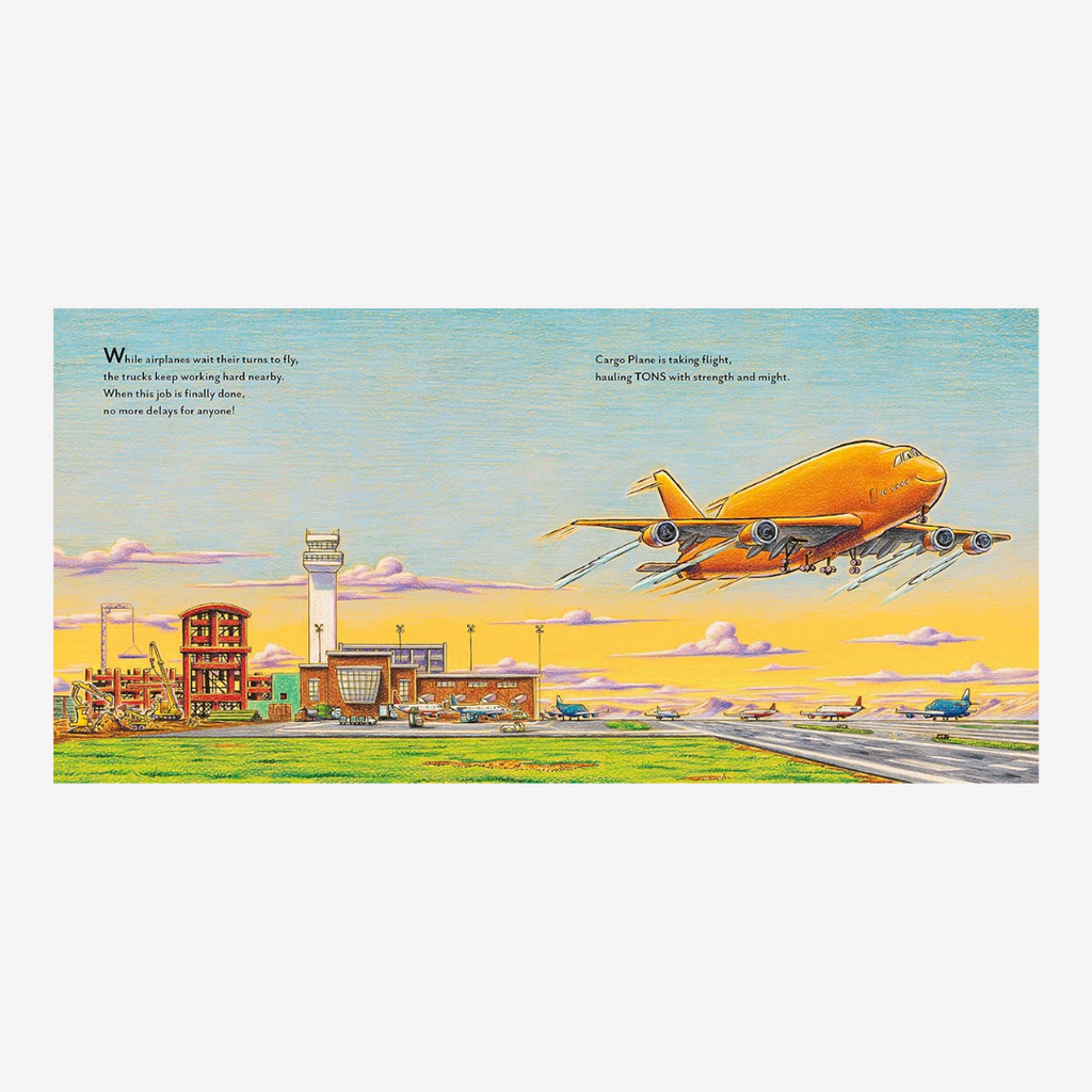 The airport is a busy place-Belt Loader, Tractor, Snowplow, and many other vehicles pull the planes, pump the fuel, move the luggage, maintain the runways, and much more. Working together, the team will get all the planes in the air in time for a sweet and sleepy goodnight.