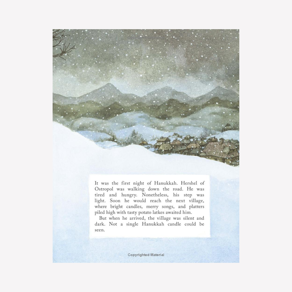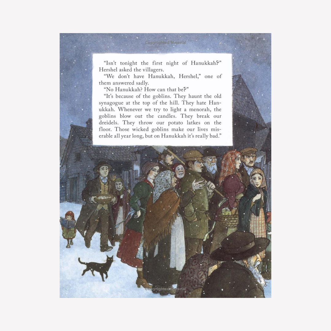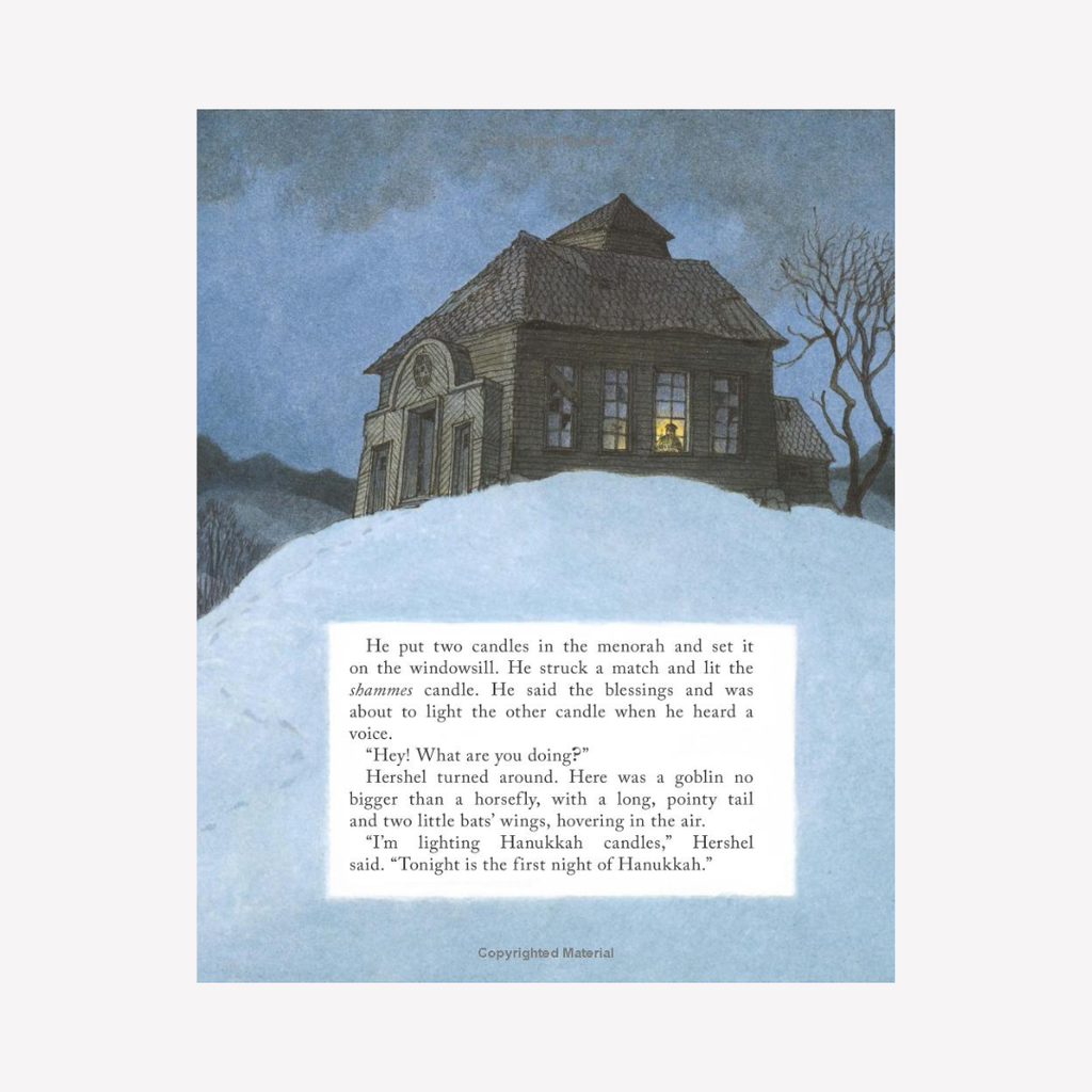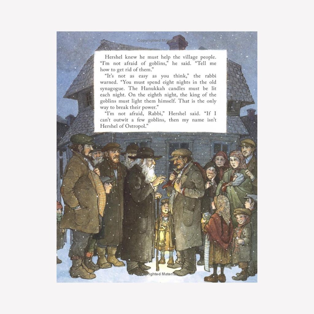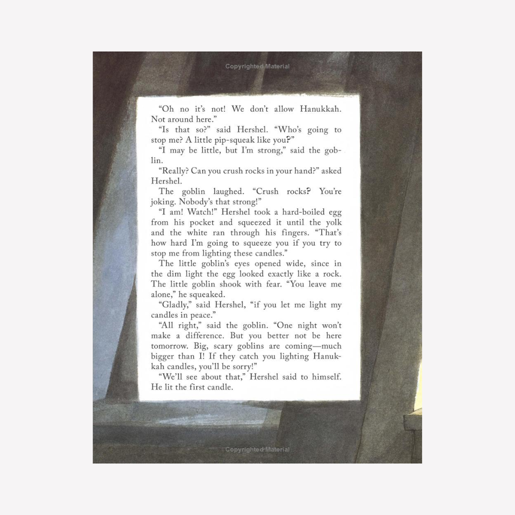 A haunting tale with a warm heart, Hershel of Ostropol arrives at a village on the first night of Hanukkah but finds the villagers too afraid to light a single candle! Goblins with spindly claws and twisted faces are haunting the synagogue. Hershel vows to break the curse. The clever trickster faces down one goblin after the next, night after night, until he meets the terrifying King of Goblins. It will take all of Hershel’s wits to trick the King of Goblins to light the Menorah himself.