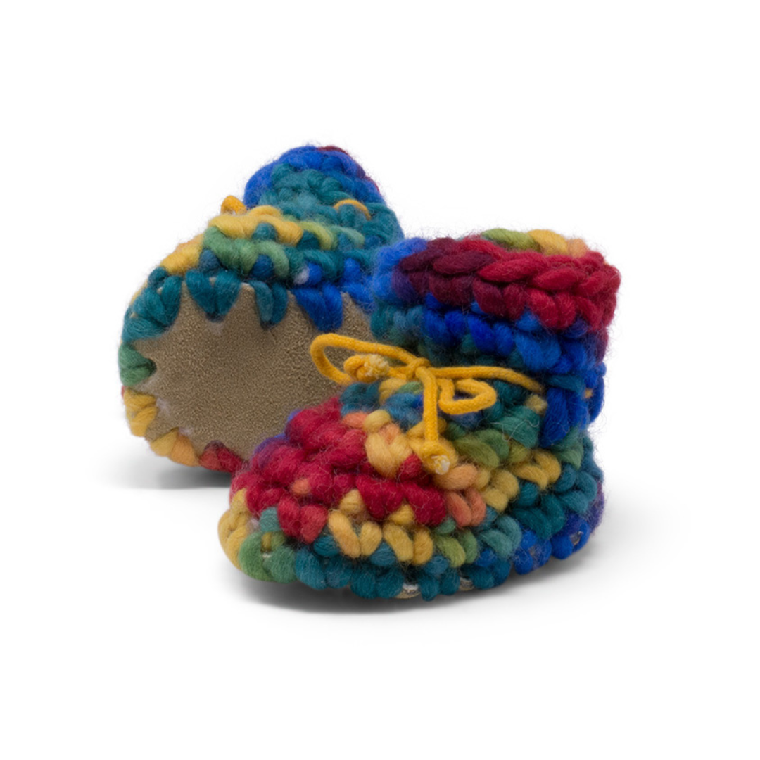 These wonderful hand-dyed wool crocheted slippers are made by a family business in Canada. Padraig slippers are an all-purpose slipper with a great sheepskin soling concept that that are often used for moccasins. Innersoles are soft, genuine sheepskin, and outer soles feature non-slip suede. You will appreciate how easily it slips on and off. Read less