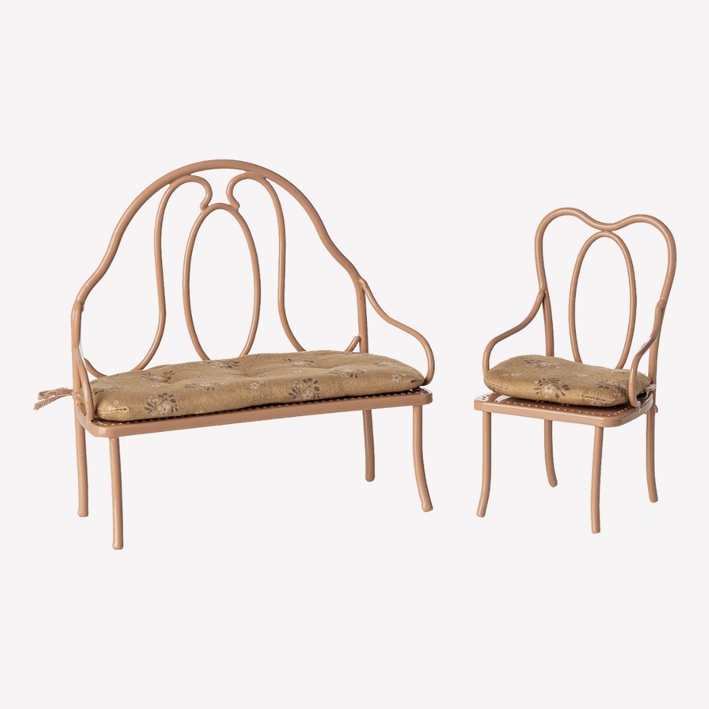 A beautifully nostalgic and comfy place for your bunnies and mice to sit. Lovely with a bench, alone or with an additional chair. Perfect for size 1 or 2 bunnies/rabbits and extra adorable for a couple of mice to share. Bench sold separately.