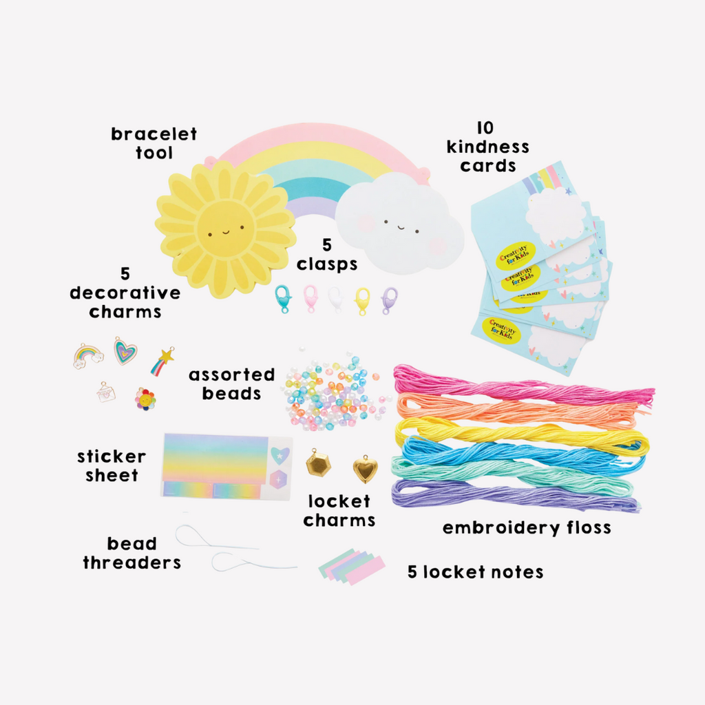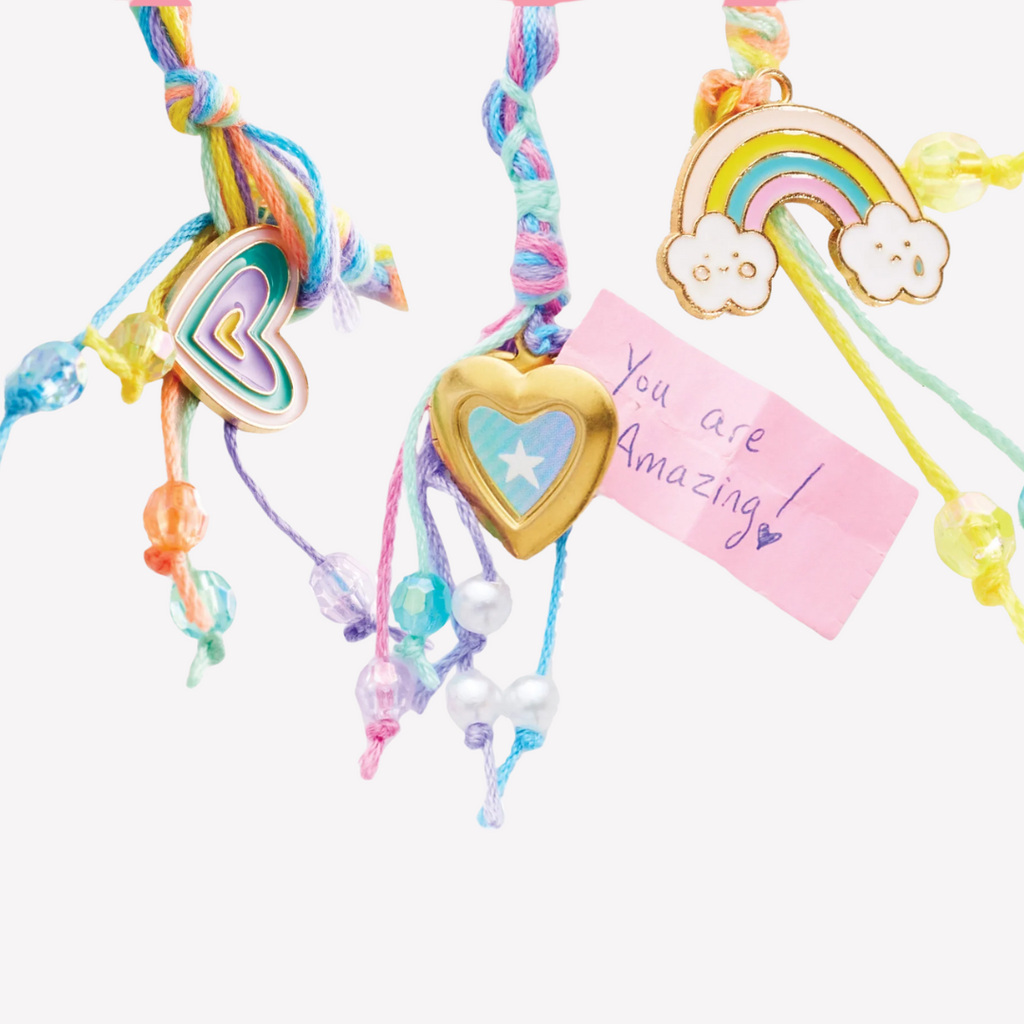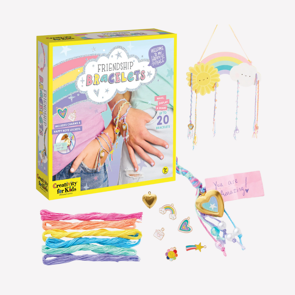 Calling all friends! This amazing kit is perfect for beginners or advanced makers. Wear, Share, stack! Everything you need to create something wonderful for yourself and/or your friends. Work together or alone using dexterity, focus and community building skills. Friendship bracelets are a simple start to building bonds that last.