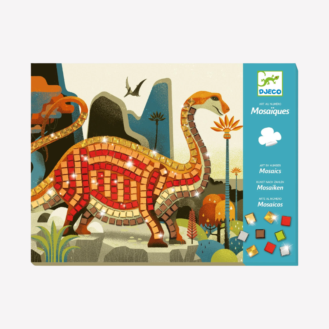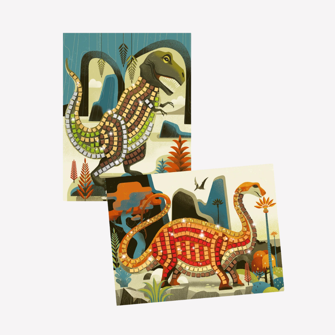 Learn the wonderful art of mosaics with this dino-riffic kit. Peel and stick the colorful, shiny stickers onto exciting and epically prehistoric pages. Fun alone or with friends and great at home or on the go.