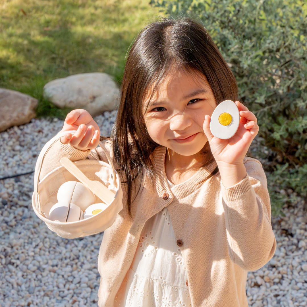 Sometimes it's good to put all your eggs in one basket, especially when it's fun! Eggs are always a little bit interesting and exciting. This set give little ones a chance to experience the fun of eggs without the mess all while developing cognitive and fine motor skills.