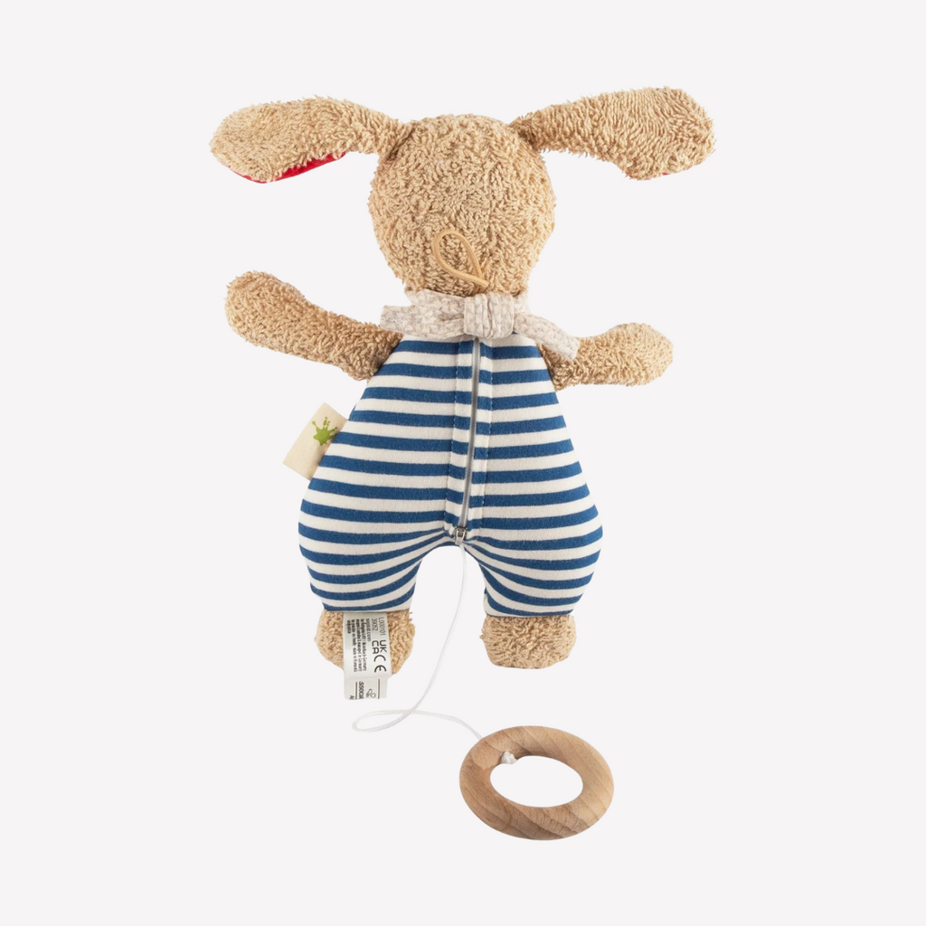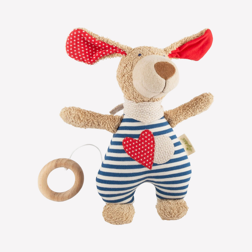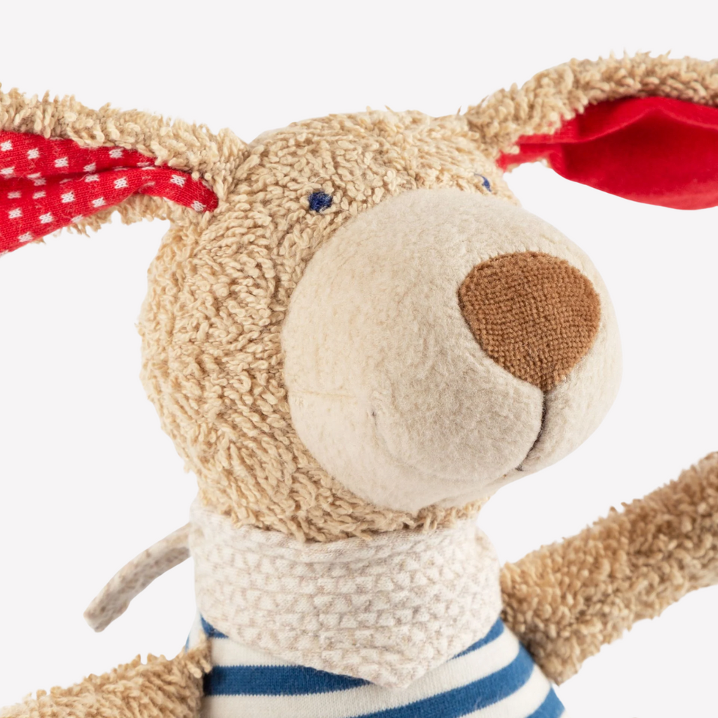 Cuddles and lullabies make babies happy! This delightful dog is perfect for little hands to grasp, cuddle and snuggle. The soft music will soothe and delight. An ideal companion from the first hours through bedtime, naptime or anytime. Perfect for babies with sensitive skin.