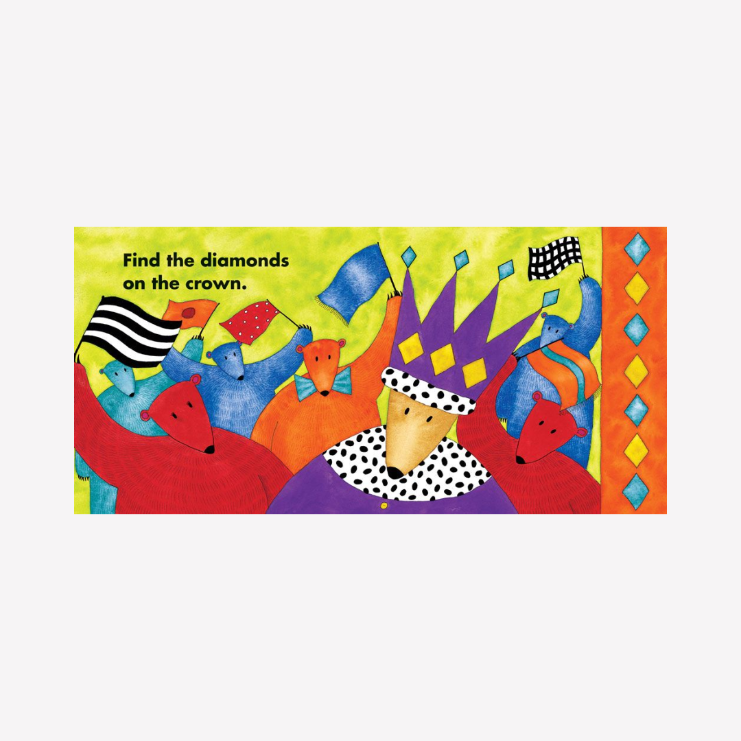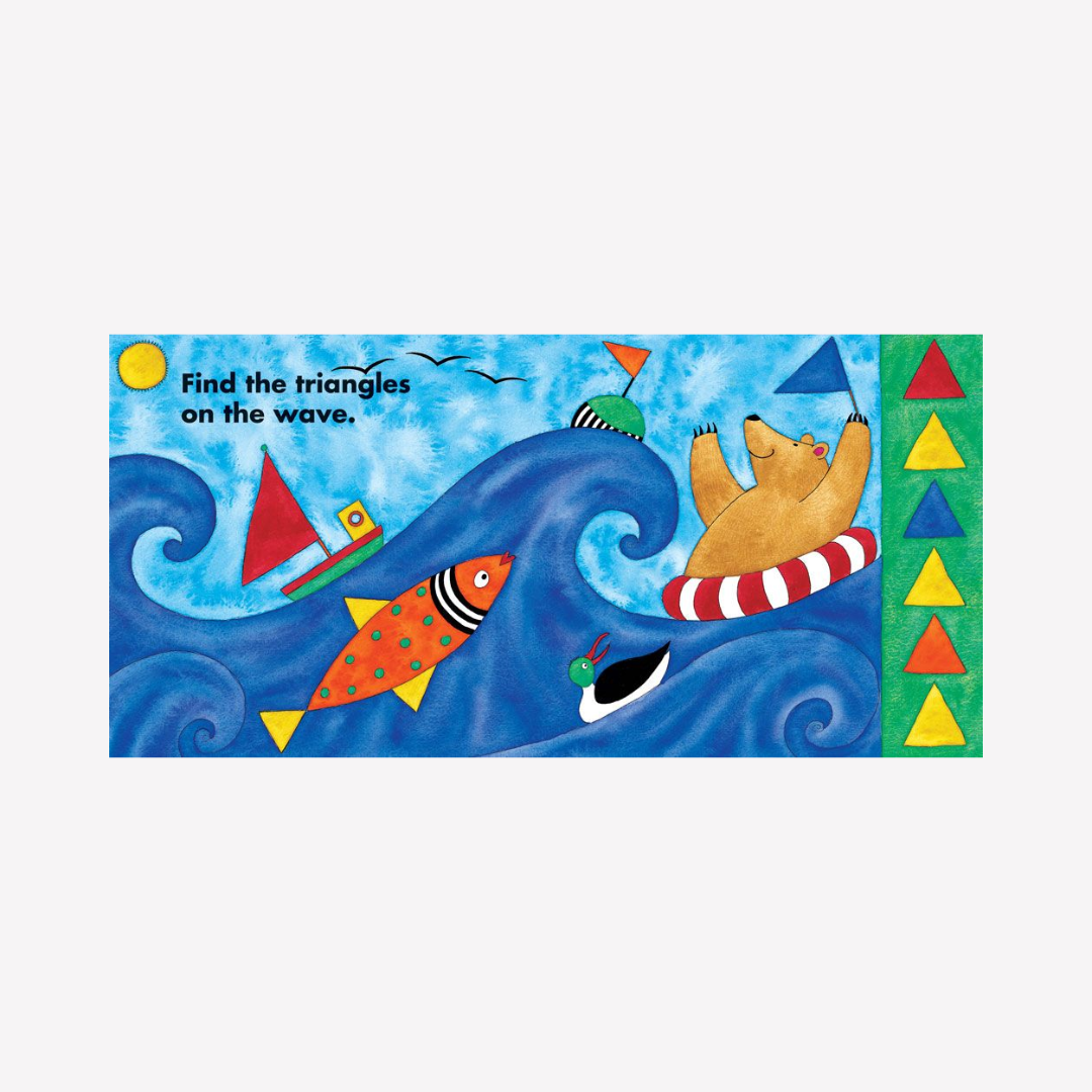 Discover lots of different shapes with Bear — there are triangles on the waves, diamonds on the crown and stars in the sky. Includes link to audio version.