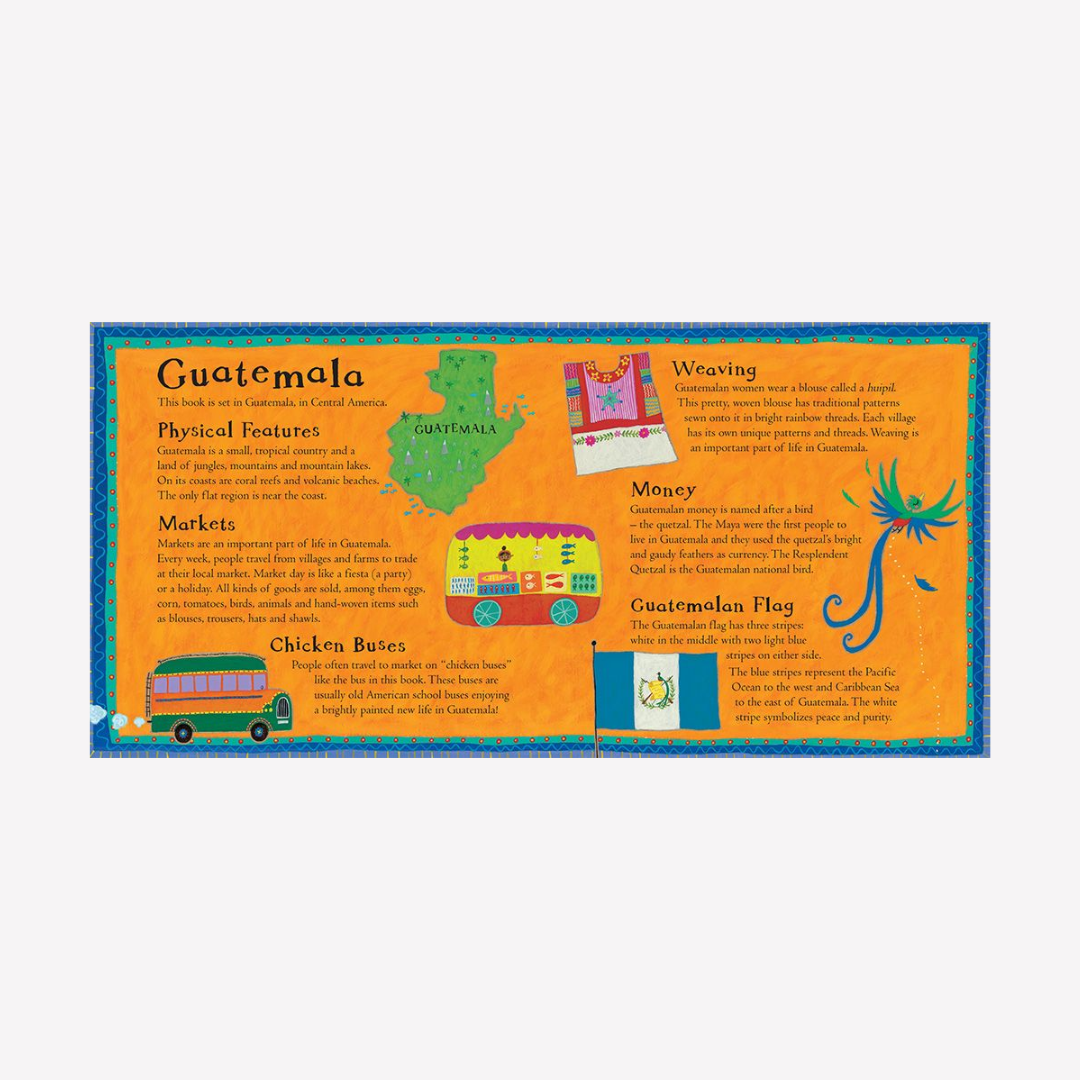 Take an exciting bus ride from a Guatemalan village to a market town with this fresh approach to a favorite song. Features endnotes about life in Guatemala and a link to audio and video versions.