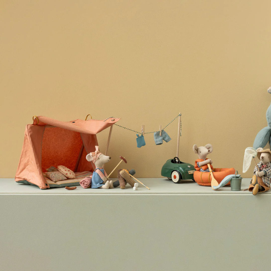 Sing campfire songs, roast treats and have a super fun campout with this adorable bonfire set. A perfect addition to your tent, mouse house or any dollhouse. Hiker mouse and other items sold separately.